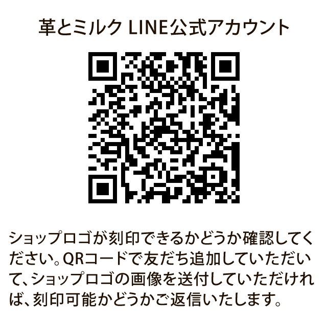 ロゴが入れられるかどうか確認する場合は以下URLから「革とミルク」LINE公式アカウントをフォローして画像を送ってください。