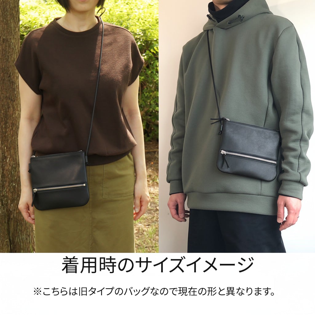 お札と小銭を一緒に入れると、小銭だけがコインポケットに落ちていく不思議なサコッシュです。